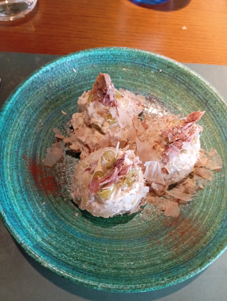 Es una cocina con pretensiones pero le falta algo. He probado varias cosas y algunas están buenas y otras menos buenas. Esta vez pedí ensaladilla con melva. Sin gran sabor ni gracia ninguna. Hay que pensárselo mucho antes de poner un ensaladilla en el mercado en una ciudad como Sevilla, experta en esta tradicional tapa. De segundo pedí risotto de espárragos y trufa. Esto sí estaba mejor. Bastante bueno y sabroso. Risotto cremoso en su punto.