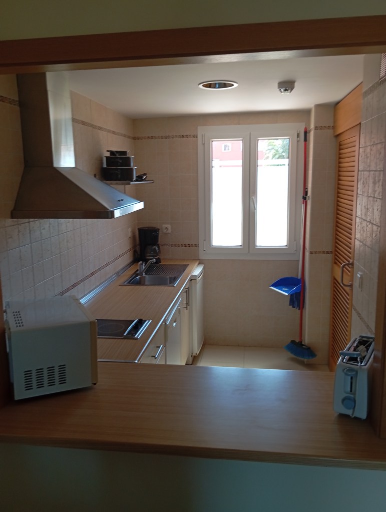 Nosotros elegimos un apartamento de dos dormitorios. La cocina estaba bien equipada. La nevera era pequeña pero enfriaba mucho. El menaje suficiente y variado. No echamos en falta nada. Bueno, quizás unas copas para vino. El apartamento era grande y moderno. La terraza estaba bien. Aire acondicionado y wifi. Todo correcto.
