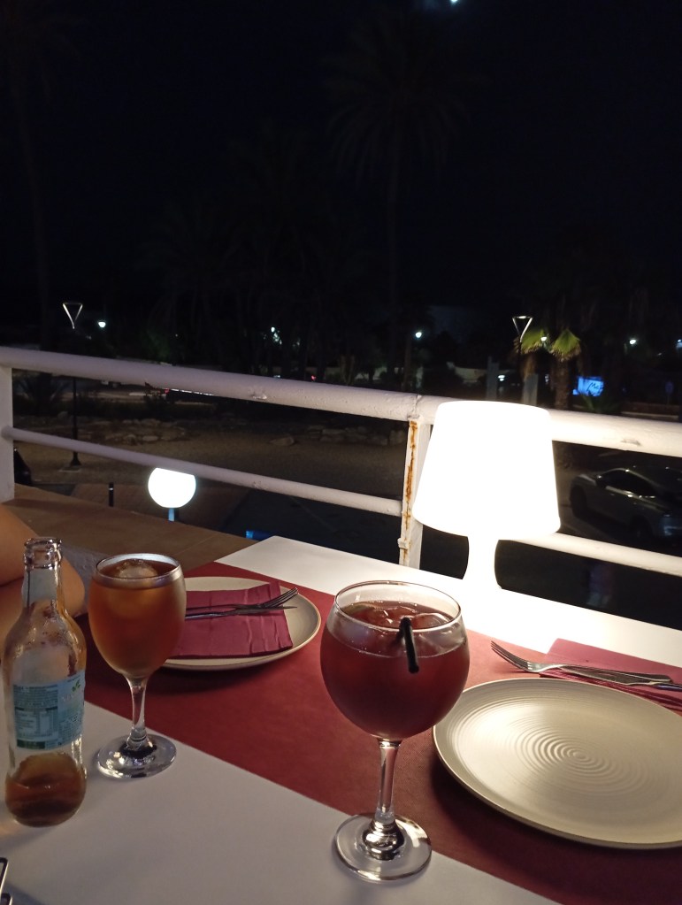 Bebimos vino tinto argentino Malbec y un tinto de verano que parecía sangría. Muy buenos ambos.