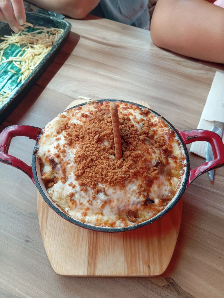 Uno de los platos estrella son las patatas fritas con carne hecha a fuego lento, queso fundido y crema de Lotus. Como idea rompedora me parece genial. Incluso los dos primeros bocados me encantaron pero es una mezcla demasiado empalagosa. Imposible de comer. Si lo comes entre varios antes de la hamburguesa te quedas lleno. Dejamos la mitad del plato. Demasiado intenso. Las croquetas de chuletón estaban muy buenas.