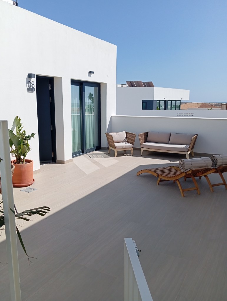 Apartamentos simples pero bien equipados. Amplios, con mobiliario moderno y amplias terrazas. Me llamó un poco la atención el diseño de las terrazas. No tenían ninguna privacidad. Cualquiera podía pasar o entrar en la terraza de tu apartamento. Cualquier huésped, vamos. Nos llamó mucho la atención. Estabas sentado en la terraza y el vecino estaba justo al lado a tu misma altura. Para hacer amigos vale.