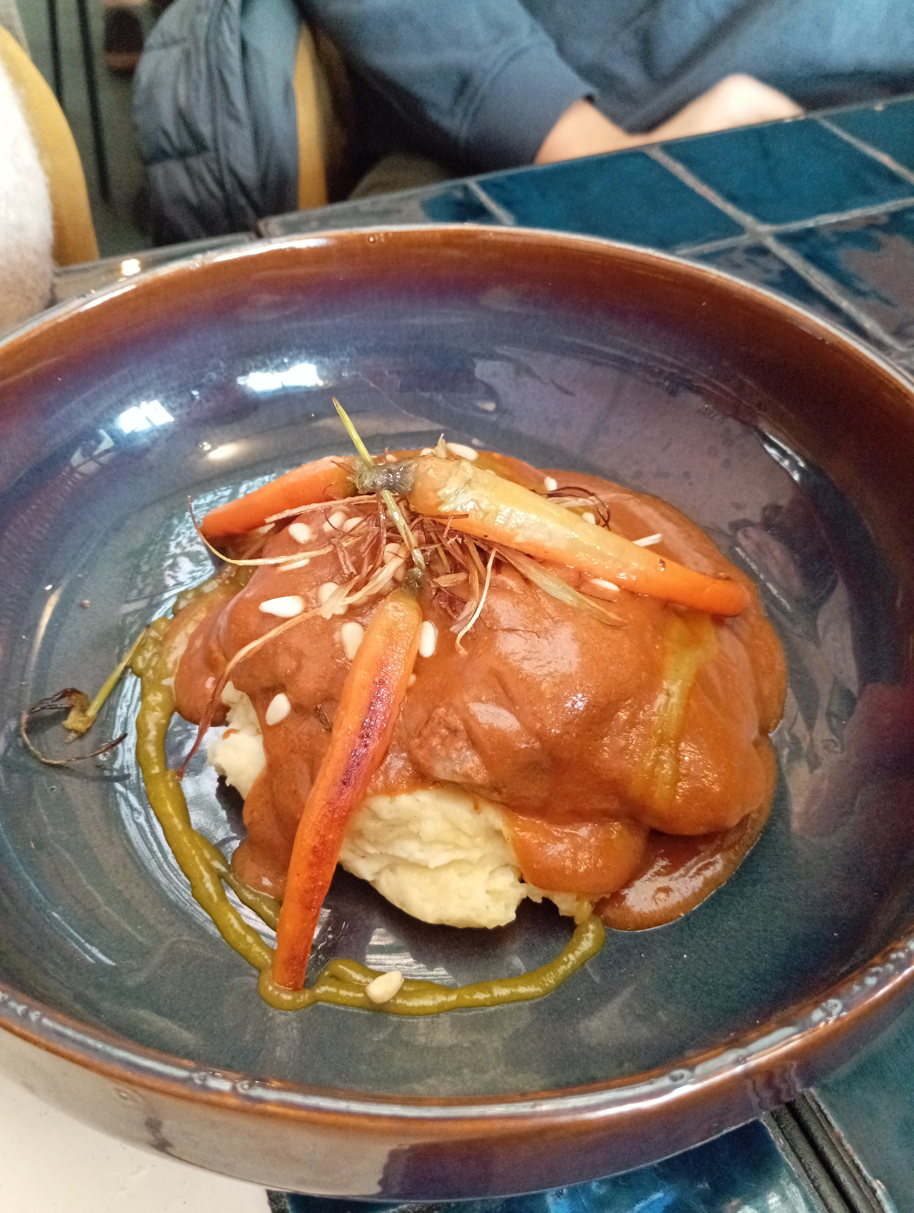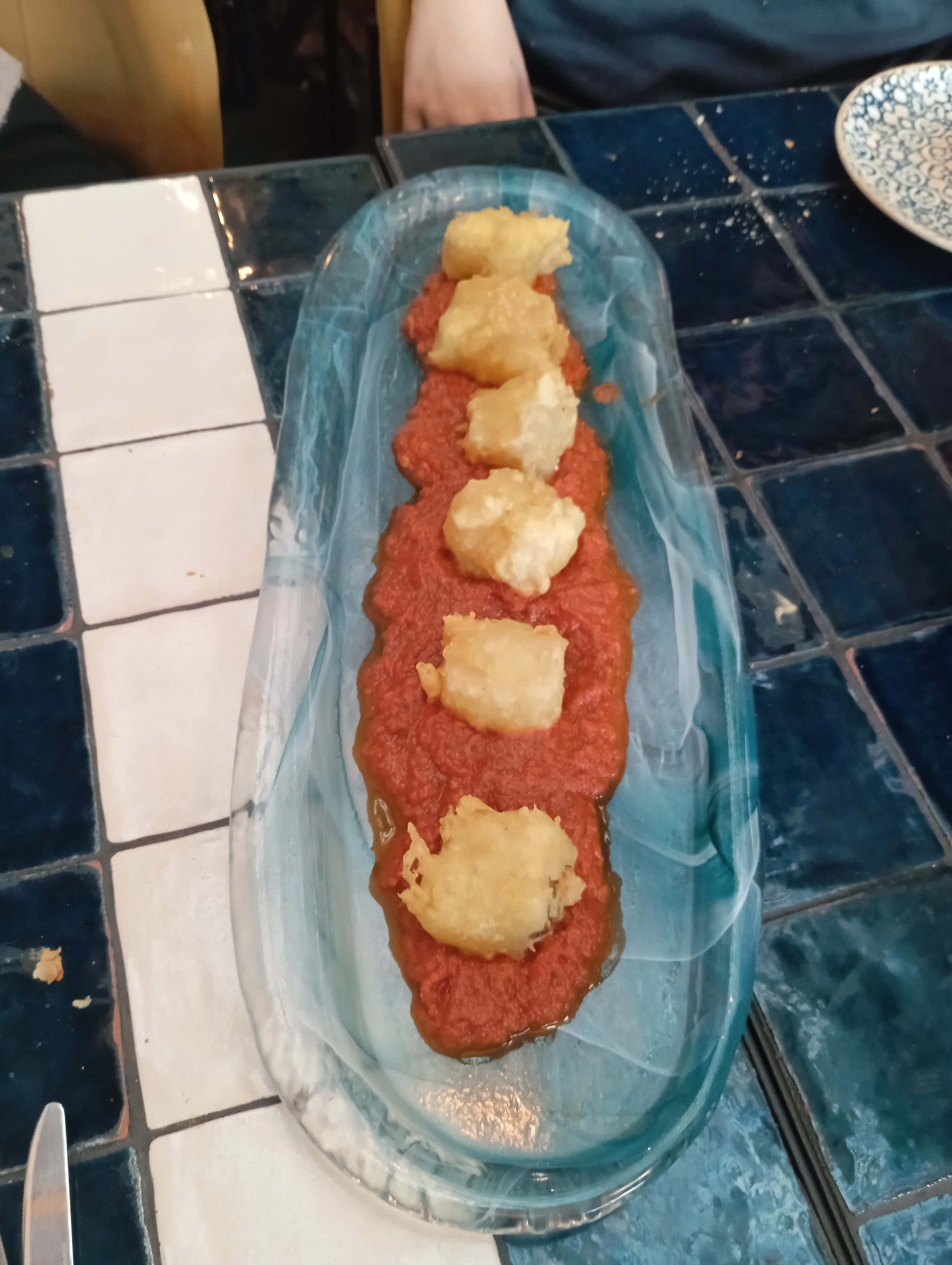 Dispone de dos salones interiores y algunas mesas fuera. Decoración moderna y elegante. Camareros uniformados. Todo apunta bien.