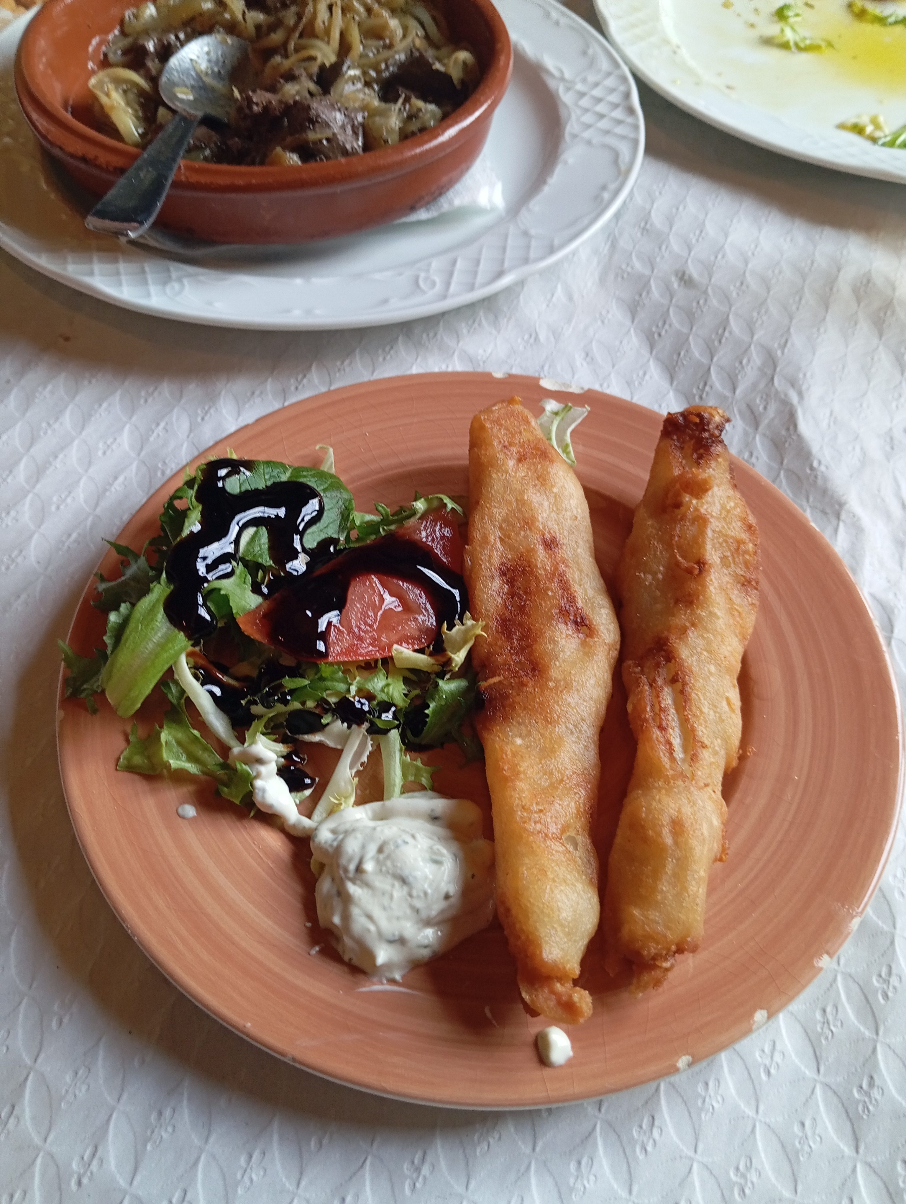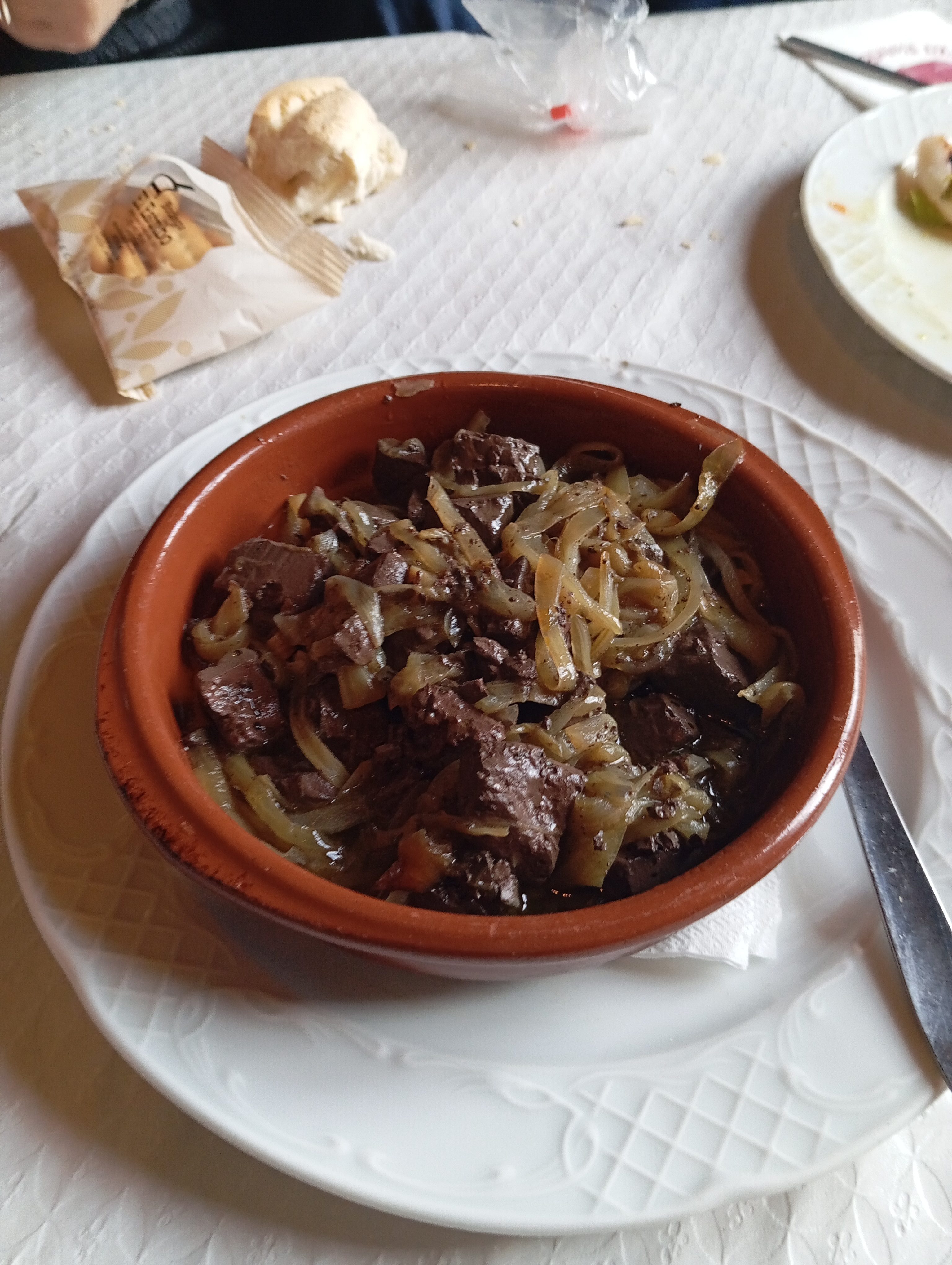 Carta amplia y variada. Carnes, la especialidad de la casa, guisos caseros, embutidos y pescados. Comida tradicional. Siendo sincero, todo me pareció correcto pero sin pasar de ahí. Un sitio de comida casera debe tener unas croquetas excelentes. No me lo parecieron. Las pavías muy flojas. Estamos en Sevilla. No se puede fallar en las pavías. La carne bastante bien. Me gustaron las tiritas de ternera. Quizás lo mejor. Y el mosto, de Pedro Ximenez. Un acierto. Los chipirones limpios y buenos. Sin más. La comida en general me pareció bien pero me esperaba mucho más.
