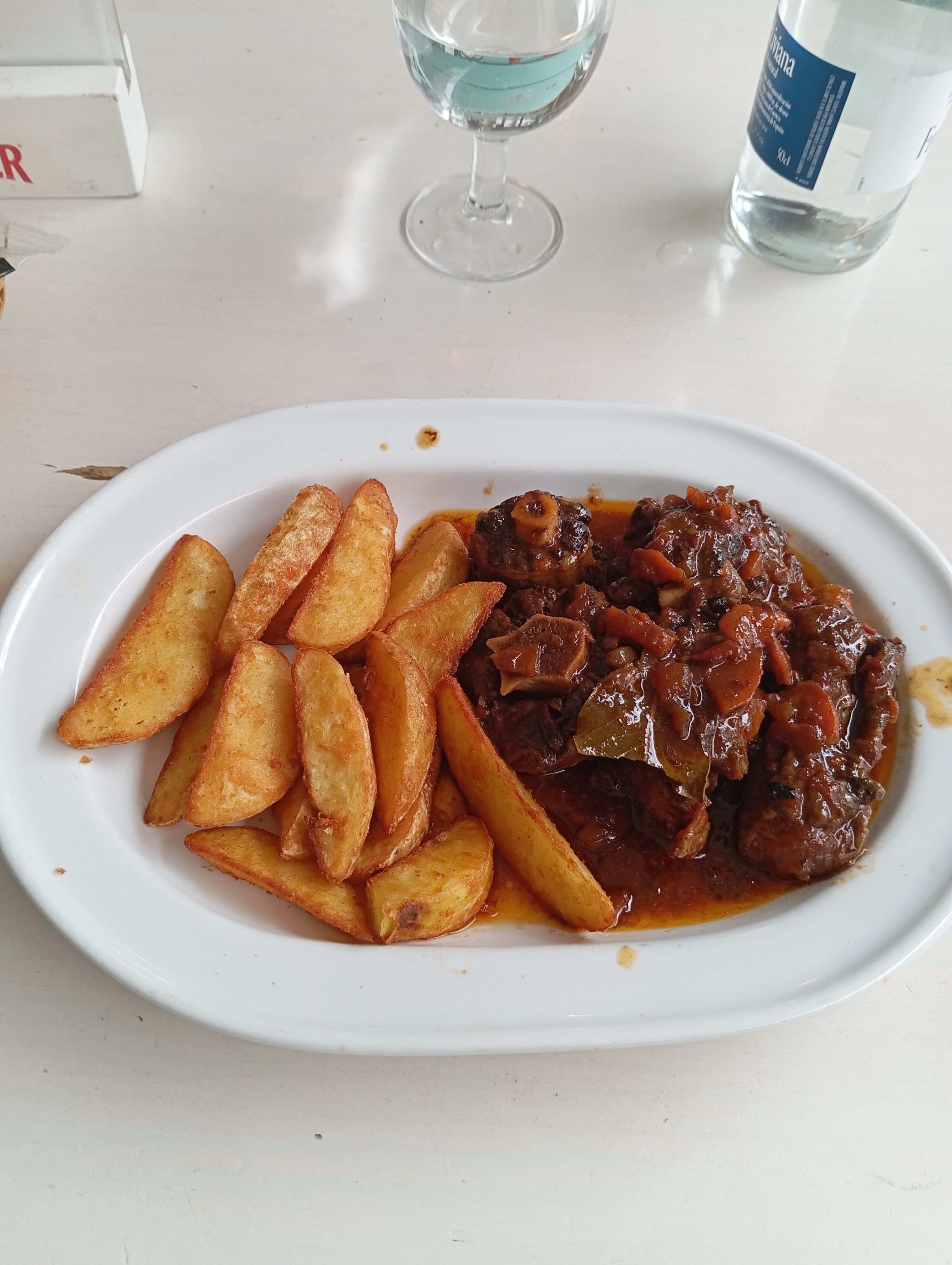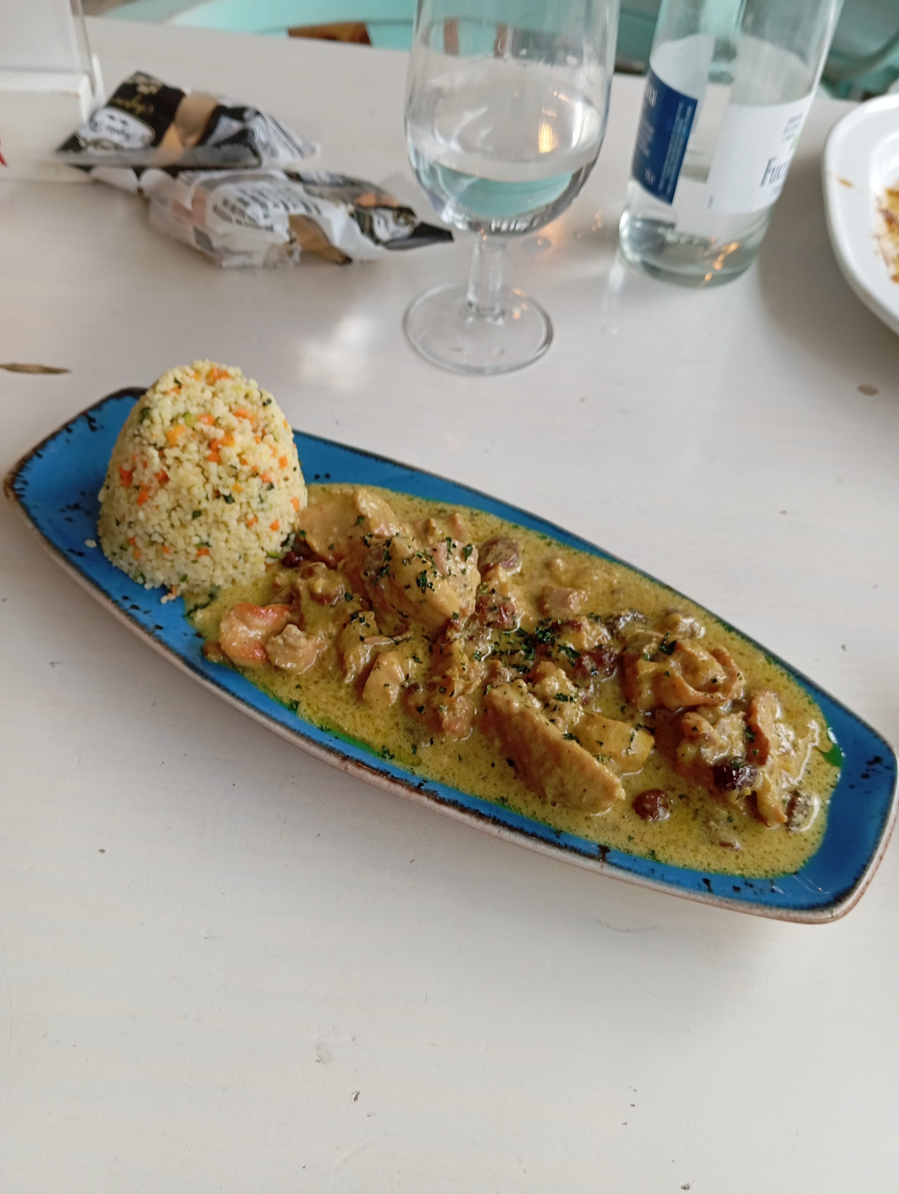 Yo probé las croquetas de bacon y plátano, correctas, carrillada, muy buena, y pollo al curry. Esto último me encantó. Una salsa cremosa con un toque sutil de curry y un picante contenido. Me gustó. La cola de toro también me agradó.