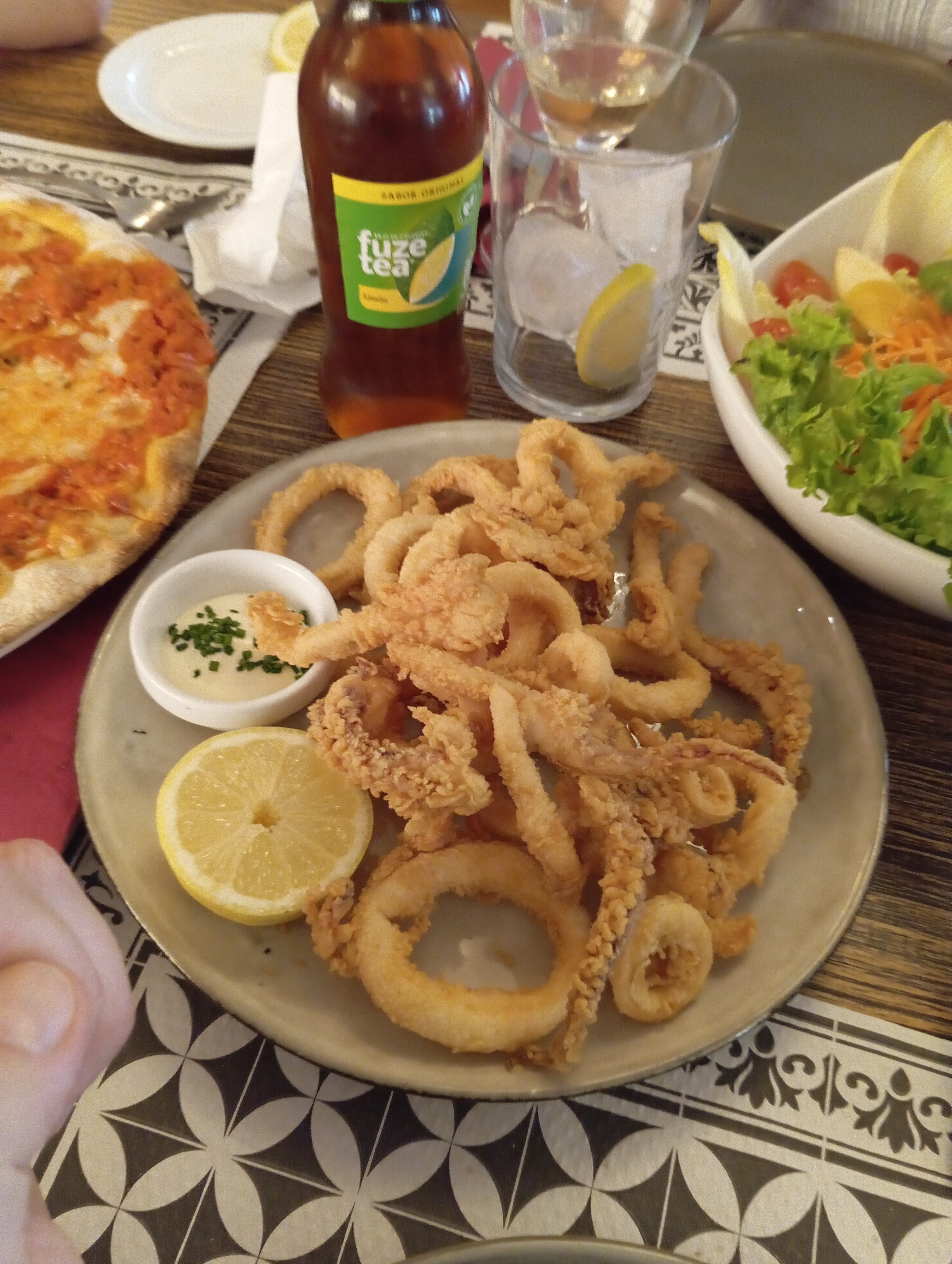 La carta es muy amplia y abarca desde pescado frito, carnes, huevos, ensaladas hasta diversos platos de pasta y pizzas. Pizzas hechas al momento y que nada tienen que envidiar a las de un restaurante italiano. La calidad de la comida nos gustó. La cantidad de los platos estaba bastante bien destacando el escalope que nos pusieron. No he visto un filete empanado más grande en mi vida. Mi hijo pequeño todavía se acuerda. No puedes salir con hambre de un restaurante de San Pedro de Alcántara, imposible. Todo muy bueno, comida de diez.