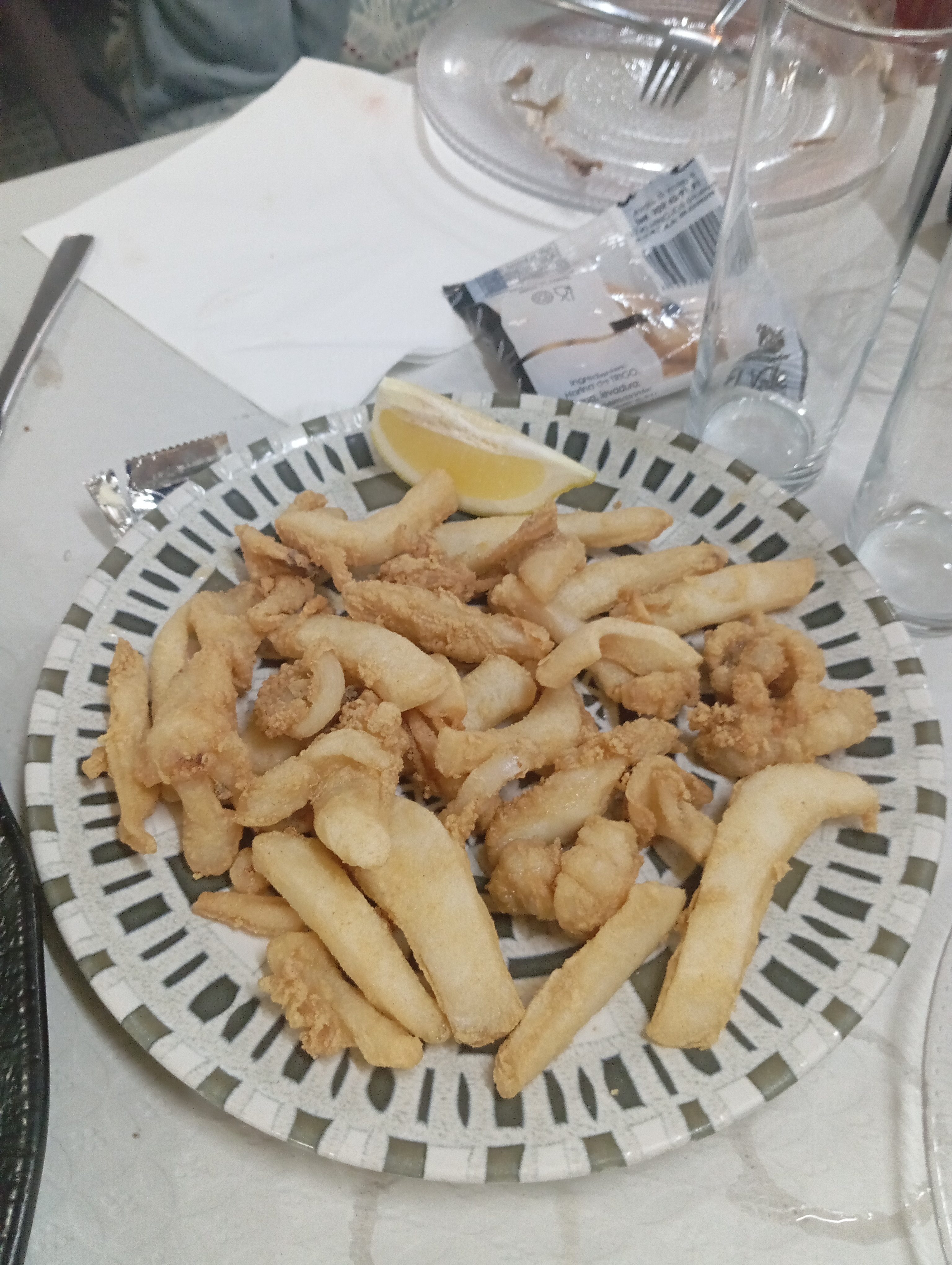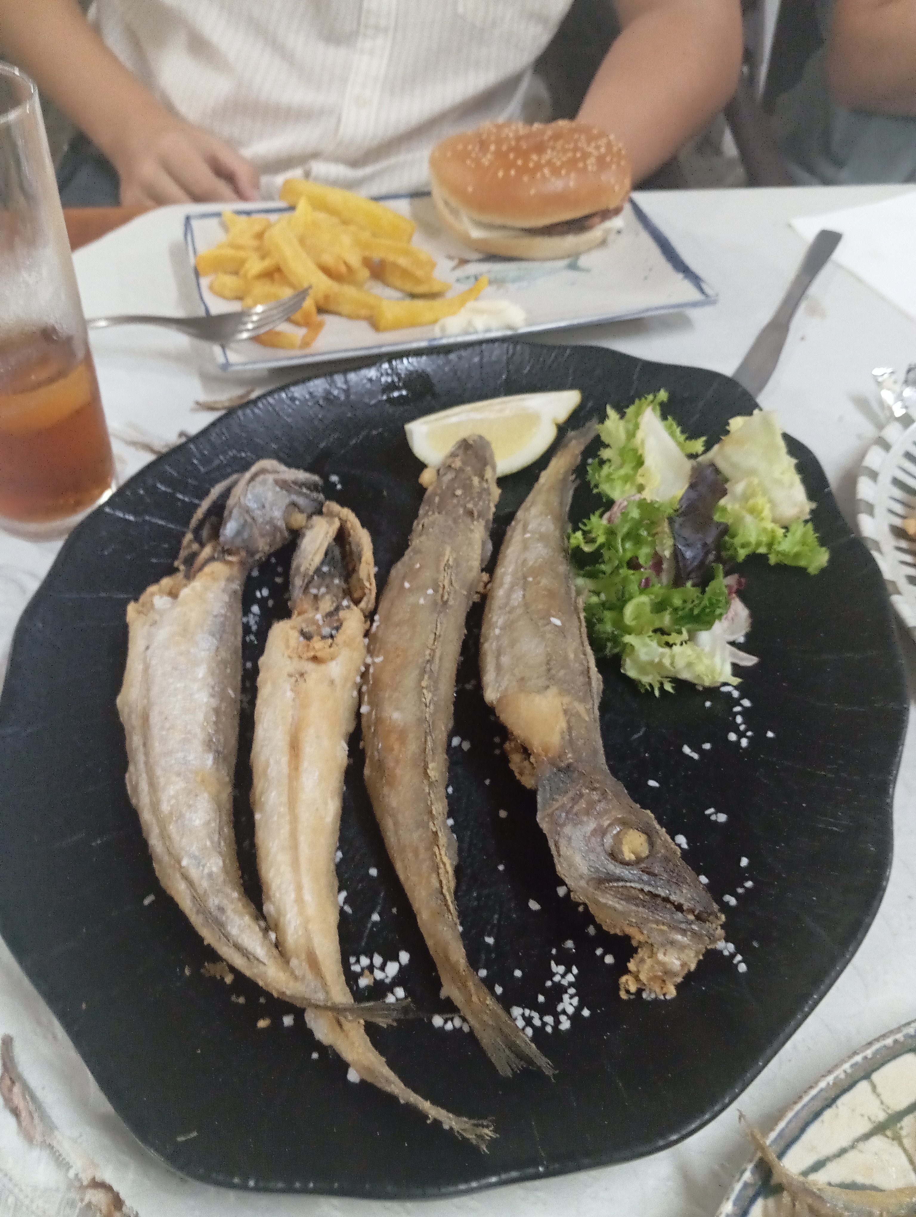 La carta es amplia y abunda el pescado. Estamos en Isla Cristina. También hay marisco y algo de carne. El rey es el pescado frito. Y bien frito que está. Todo estaba muy bueno y las raciones eran generosas. Ofrecen también algunas sugerencias fuera de carta.