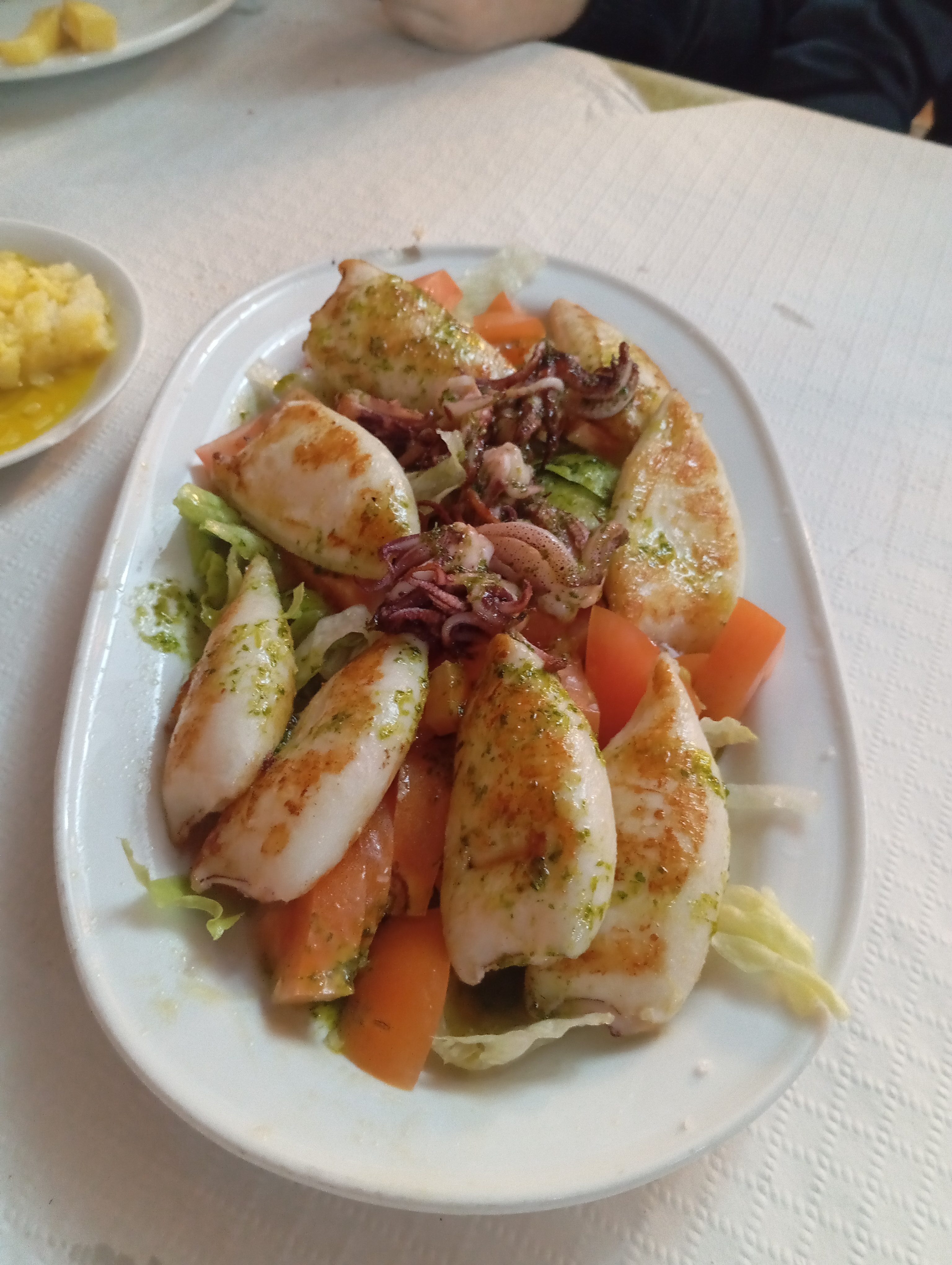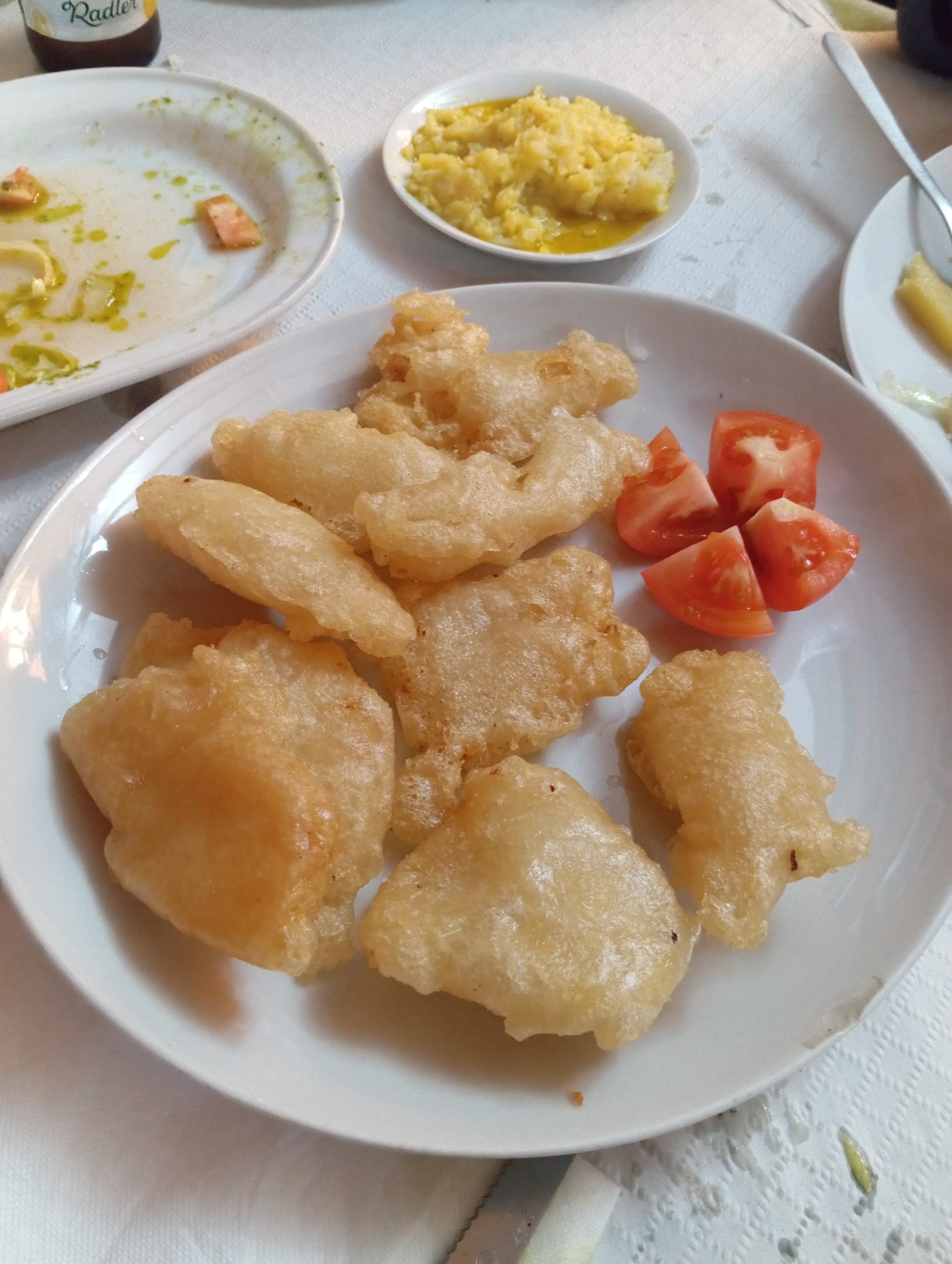 La calidad de la comida fluctúa entre unos platos y otros. La mitad estaban buenos y la otra mitad no me convenció. Las patatas con tomate y huevos fritos es lo más solicitado aquí. Estaba bueno pero es un plato simple y de fácil elaboración. El San Jacobo estaba bueno también. Las pavías, que pude observar que también era un plato que tenía movimiento, no eran aceptables. En Sevilla esas pavías no son aceptables, no se pueden servir. Muy mala experiencia. Dejamos casi todo el plato y ni nos preguntaron si no nos habían gustado. Punto menos.