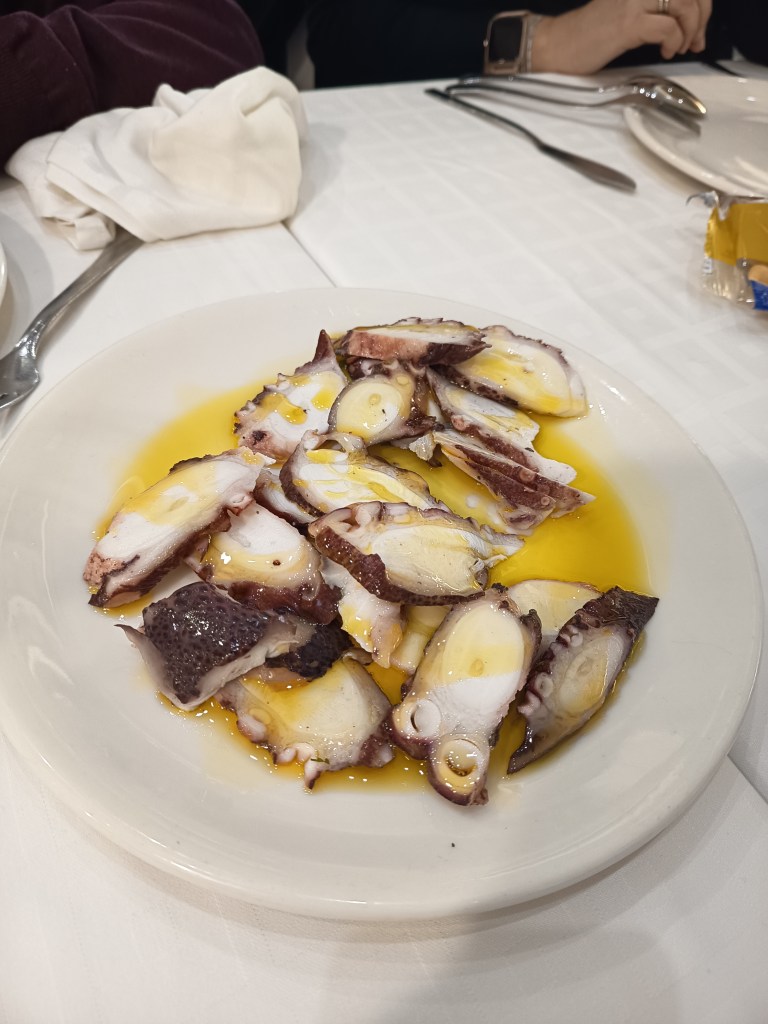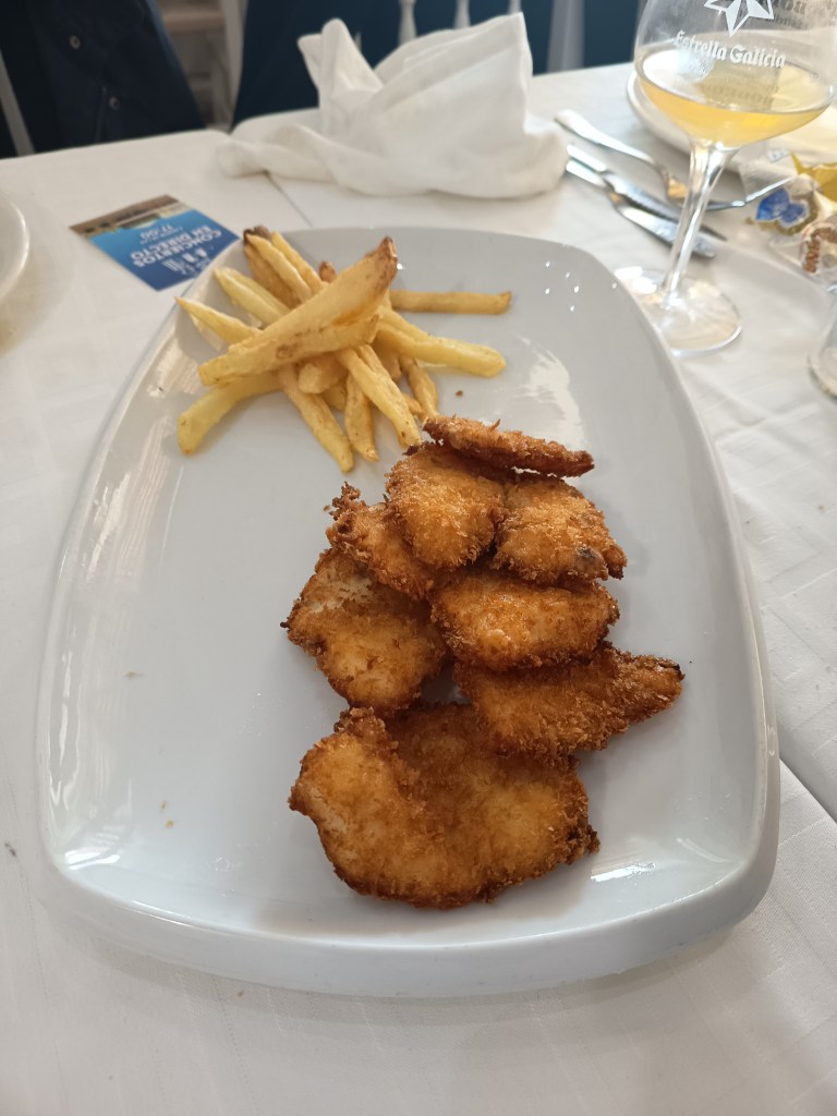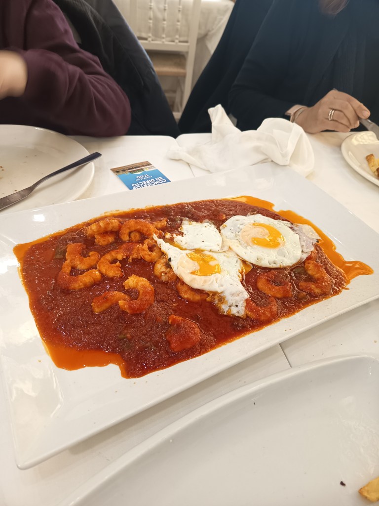 Carta amplia y marinera, como no podía ser de otra manera. Propuestas clásicas, lo que funciona, y algunas ofertas innovadoras. Ensaladas, entrantes fríos como huevas aliñadas, pulpo a la sanluqueña o atún mechado, entrantes calientes como almejas, coquinas, alcachofas con jamón y langostinos, pescados fritos y a la plancha, carnes, mariscos y arroces. Hay mucho y bueno donde elegir. Destacan también los guisos típicos sanluqueños como el rape al pan frito. Todo estaba muy bueno. Quizás me esperaba más de las coquinas. No me convencieron del todo. La corvina empanada estaba extraordinaria. Mención especial para los langostinos con tomate y huevo frito. Sencillo pero realmente delicioso. Buena presentación de los platos y buena cantidad de comida.