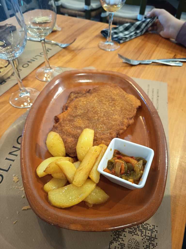 La carta es amplia y variada. Embutidos, salazones, ensaladas, pescado frito, algo de atún, que no puede faltar hoy en día en ningún restaurante, y carnes a la brasa. A destacar el cachopo asturiano, que también vemos hoy en día en muchas cartas. Postres caseros y deliciosos culminan la oferta del Molino de la Romera.