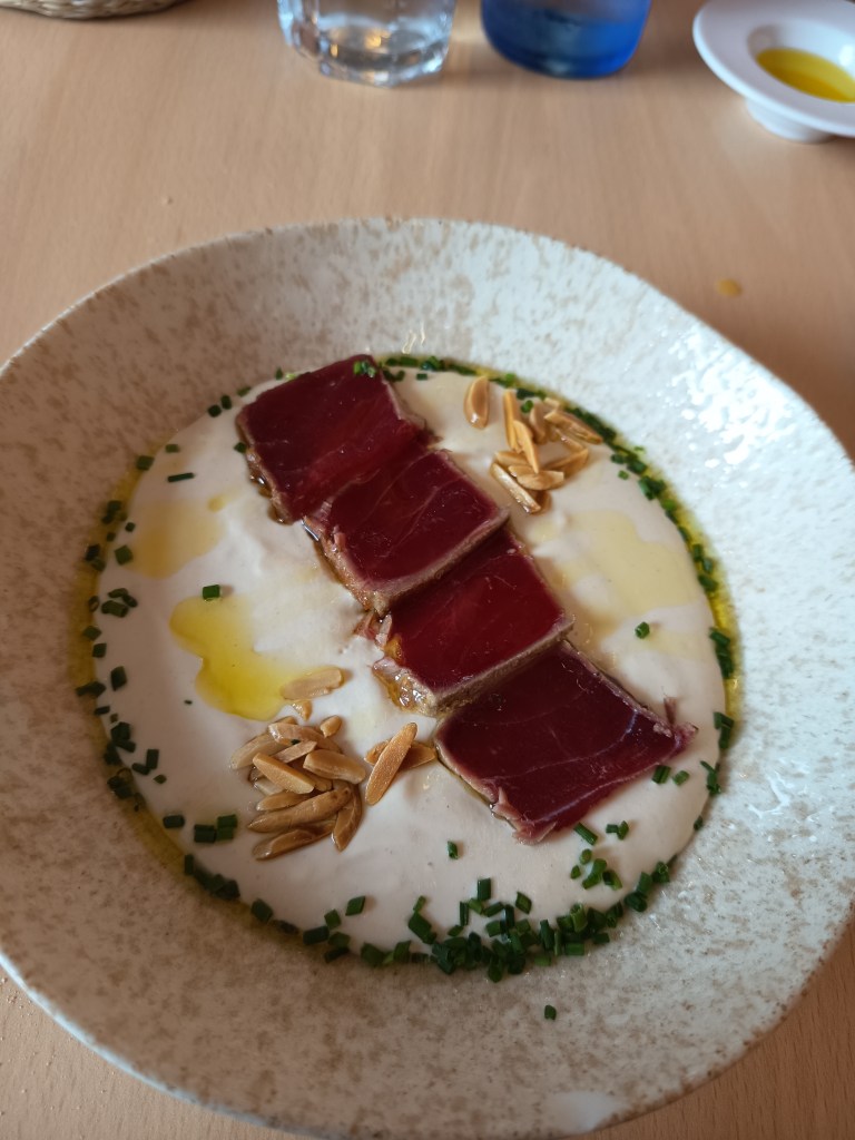 Carta amplia con muchas ofertas sugerentes. Ofrecen atún en crudo, como el Jamón de Barbate o Tarantelo en carpaccio, en semicrudo, como el Ajoblanco con tataki de descargamento, o cocinado, como el Tarantelo glaseado. La ensaladilla de Tarantelo con mojama o las croquetas de atún son unas de la tapas más solicitadas y están muy buenas. Yo no le pondría mayonesa de Wasabi a una croqueta pero bueno, la evolución. Hay que probar.